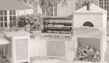 In the end, I settled on a new Weber charcoal grill, a unit that cost two-and-a-half times as much as my original gas grill. Out of curiosity, I ordered the Frontgate catalog a year later, just to see what they had on offer. At the high end they were offering the same Viking Frontgate Professional model as before, but this time the basic unit was embedded in a fixed island that a contractor would construct in your back yard. The ancillary range-top burners in the new unit were set well off to the left side. Still further to the left, there was a tiled bar with a handsome canvas umbrella, and off to the right there was a wood-fired pizza oven. This unit is offered for $13,769.
