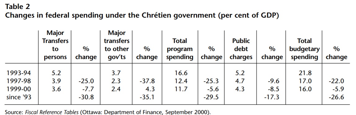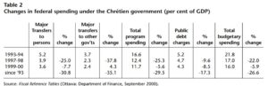 Regular Auditor General’s reports remind us that we still live in a political culture in which political expediency and pork barrelling often trump good management practices, let alone rational policy-making. However, despite occasional reversals such as the HRDC slush funds used as a political sweetener to compensate for EI cuts after 1996, or the subsequent rollback of EI reforms announced before last year’s election, the policy framework reaffirmed in Martin’s annual budgets has imposed a greater sense of focus and discipline in federal spending than at any time since the 1950s.