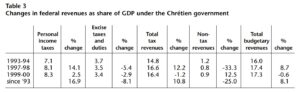 This process is not entirely new. The implementation of Keynesian economic policies after the Second World War, reinforced by the extension of Ottawa’s wartime control over most major sources of tax revenue, resulted in more-or-less authoritative finance departments that enforced centralized control over budgetary processes at both federal and provincial levels. Fiscal centralization enabled finance ministers to create and enforce a fiscal framework for cabinet colleagues that was capable of balancing competing political and economic demands. This process helped to insulate budgetary decisions from pressures intended to serve short-term political interests, but which might not have been sustainable in the medium and long term without eroding the conditions necessary for continued economic growth. The breakdown of these institutional structures and of the fiscal self-discipline they had promoted resulted in the increasingly erratic management of tax and fiscal policies during the 1970s. A renewed commitment to these principles, underpinned by close cooperation between Martin and Prime Minister Jean Chrétien, has been a decisive factor in restoring budget balances and more coherent economic policies during the 1990s. It has also enabled Martin to accumulate the fiscal resources necessary to reassert a stronger role for the federal government in coordinating economic and social policies—despite a progressive decentralization of fiscal power which has seen provincial own-source revenues rise to 95 per cent of federal revenues in 1999-2000.