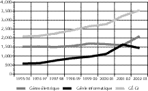 L’industrie joue ici un rôle double : d’une part, le succès des entreprises du secteur des TIC a, dans les années 1990, attiré un nombre croissant d’étudiants vers les programmes de GÉ-GI; d’autre part, ce succès a rendu beaucoup moins attrayants les programmes de maîtrise et de doctorat. Pendant plusieurs années, obtenir un bon salaire dans ce domaine n’était pas difficile pour un bachelier.