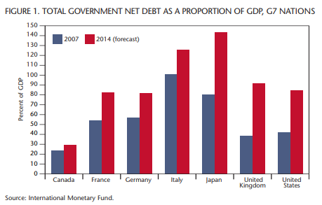 Another advantage today’s budget cutters have is that there is “tax room.” In the 1990s a tax wall had been reached: 43 taxes were increased between 1984 and 1993. In contrast, taxes have been reduced in the last decade, so that, for example, by 2012 Canada will have the lowest corporate tax rate in the G7. There is “room” for Canadian taxes to increase without affecting our competitiveness, but is the best long-term policy choice to raise the GST back to 7 percent? Answering this question requires a brief discussion of the longer-term policies required to deal with the economic and fiscal costs of an aging population.