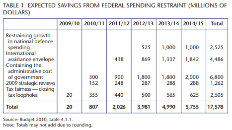 As well as committing $19 billion to the second round of stimulus spending, the 2010/11 federal budget outlines a plan to gradually reduce the deficit from $49.2 billion in 2010/11 to $1.8 billion in 2014/15 (and presumably to zero in 2015/16). Cost-cutting measures include ending stimulus spending as planned (except for work-sharing agreements); a three-year freeze of departmental budgets and the salaries of the prime minister, ministers, members of Parliament and senators; restraining government administrative costs and reviewing programs; freezing international assistance as of 2011/12; and reducing the rate of growth of military spending as of 2012/13. Also, tax loopholes will be closed and employment insurance premiums, which are currently frozen, will increase after 2010.