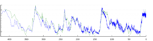 Wvong does say that, based on wobbles in the Earth’s orbit (Milankovitch cycles), climate has been cooling for a few thousand years, heading for another glaciation around 3500 AD. Now, he says, we’ve messed all that up. But, leaving aside the undesirability of another glaciation for our posterity, look again at his chart of temperature changes over the past 400,000 years. Notice the endless abrupt changes.