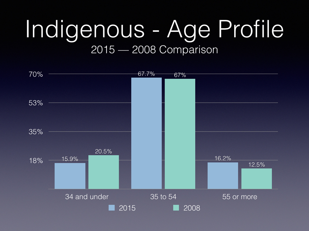 However, it would appear that there are retention problems with respect to Indigenous people given that more left in both 2015 and 2008 than were hired, as well as compared to their LMA of 3.4 percent.