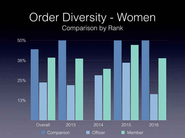 However, it does appear that the Advisory Council for the Order of Canada is making a conscious effort to compensate somewhat for this tendency, particularly notable with respect to companion appointments.