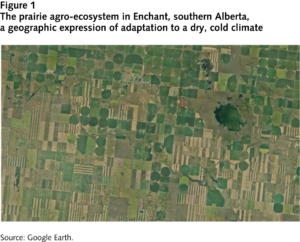 Adaptation to a dry cold climate has enabled and sustained agriculture across this region, which represents more than 80 percent of Canada’s agricultural land. Large parts of the landscape are a geographic expression of adaptation; a mosaic of crop circles, shelterbelts, strip cropping, dugouts, canals and reservoirs (figure 1). This historical adaptation has occurred in response to extreme weather, notably drought, and to seasonal, interannual and decadal cycles in the natural climate regime.