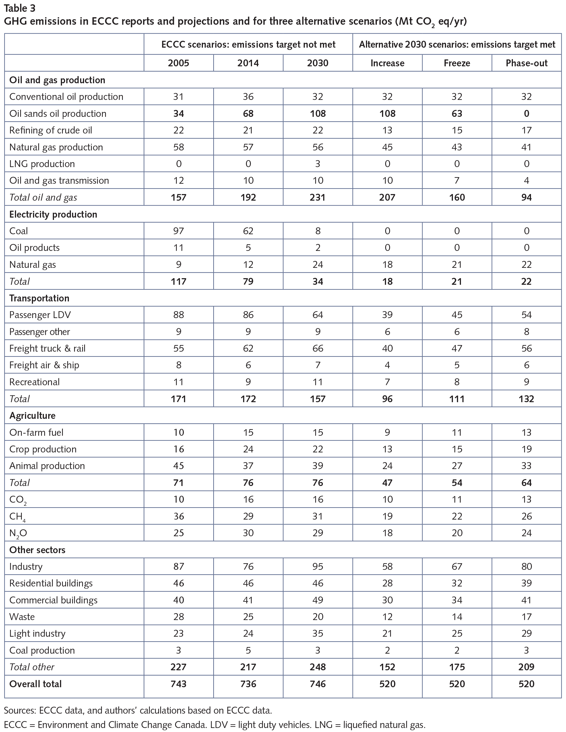 As our calculations show, only with a complete phase-out of oil production from the oil sands, elimination of coal for electricity generation, significant replacement of natural-gas-fuelled electricity generation with electricity from carbon-free sources, and stringent efficiency measures in all other sectors of the economy could Canada plausibly meet its 30 percent target.