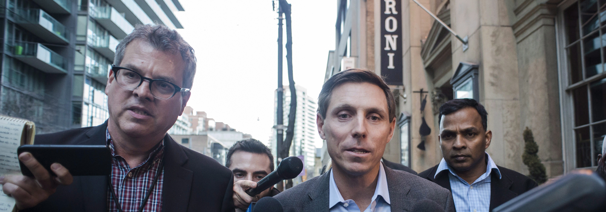 Photo: Patrick Brown speaks to media following a meeting at the Conservative Party headquarters in Toronto on Friday, February 16, 2018. THE CANADIAN PRESS/Christopher Katsarov