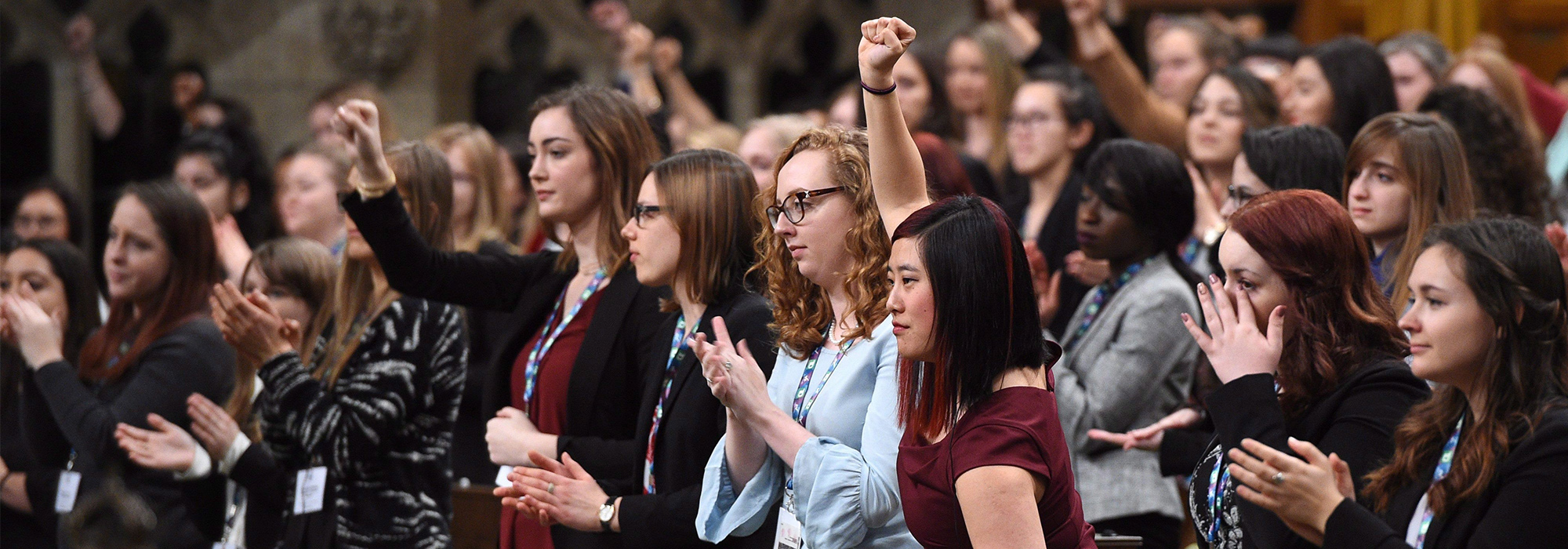 Photo: A Daughters of the Vote (DOV) event, organized by Equal Voice Canada, takes place in the House of Commons on Parliament Hill in Ottawa on Wednesday, March 8, 2017. The event brings together 338 Daughters of the Vote delegates, each woman representing a federal constituency in Canada, to occupy their Member of Parliamen´s seat in the Chamber as the representative for their community. THE CANADIAN PRESS/Sean Kilpatrick