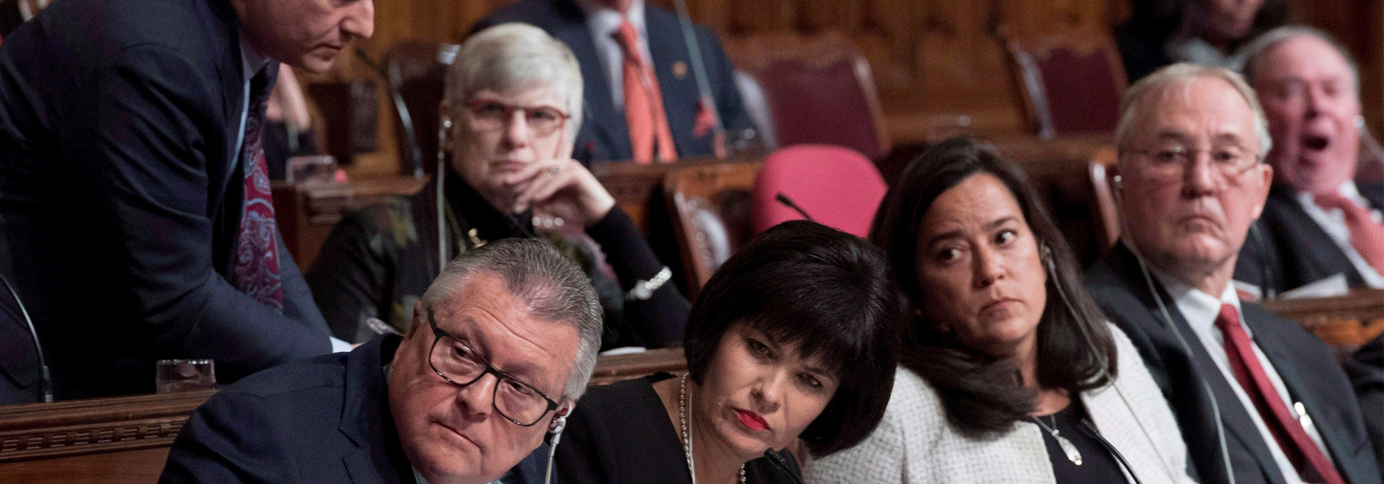 Photo: Minister of Public Safety and Emergency Preparedness Ralph Goodale, Minister of Health Ginette Petitpas Taylor, Minister of Justice and Attorney General of Canada Jody Wilson-Raybould and Parliamentary Secretary Bill Blair listen to a question about Bill C-45 during a Senate Committee of the Whole, on Feb. 6, 2018. THE CANADIAN PRESS/Justin Tang.