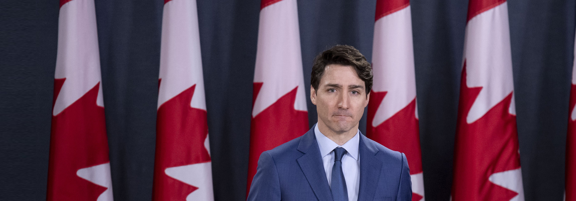 Photo : Le premier ministre Justin Trudeau donne une conférence de presse pour présenter sa version des faits dans l’affaire SNC-Lavalin, Théâtre national, Ottawa, le 7 mars 2019. La Presse canadienne / Justin Tang.