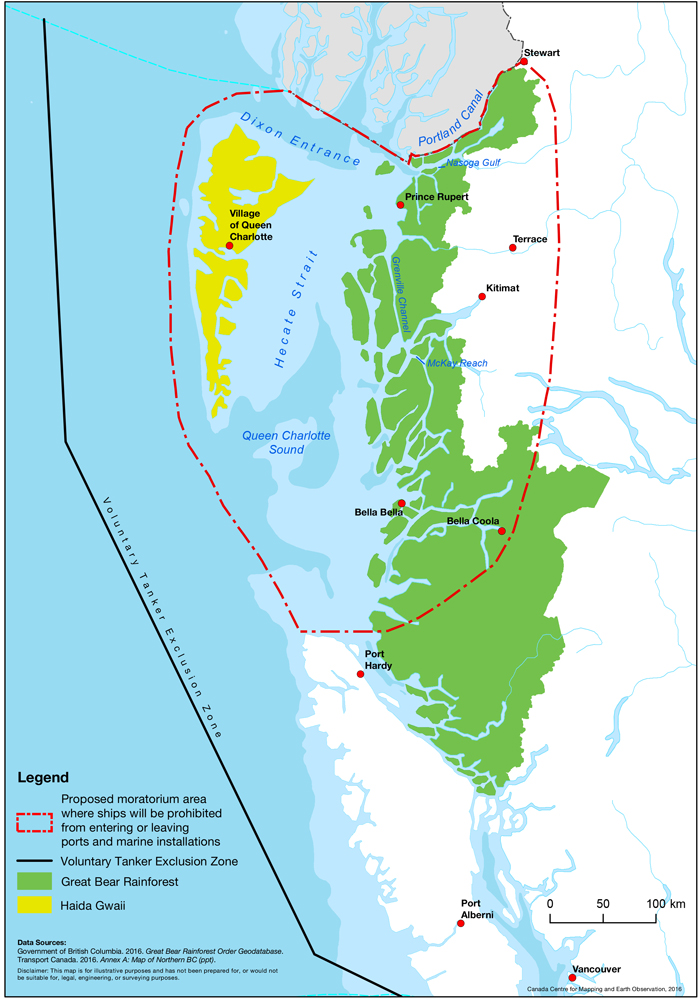 The goal of Bill C-48 is entirely new: to ban crude-oil tankers from using Canadian ports along the northern BC coast. Even the Sierra Club, in its submission in support of Bill C-48, stated the Bill would do nothing to stop existing petroleum tank barges passing by BC’s north coast in transit between Alaska and Washington State, as they do not stop at BC ports. Even the Canadian Coast Guard, in its October 6, 2017 advisory, says the exclusion zone “does not apply to tankers travelling to or from Canadian ports.”