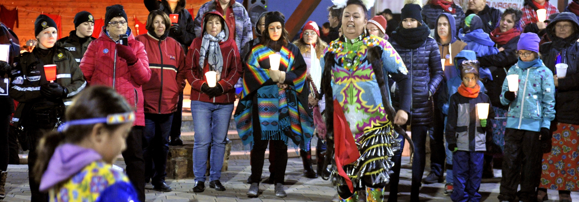 Photo : Vigile des Sœurs par l’esprit, organisée par le CAAVD en 2018, pour sensibiliser la population aux femmes et filles autochtones disparues et assassinées. Gracieuseté du CAAVD / Paul Brindamour.