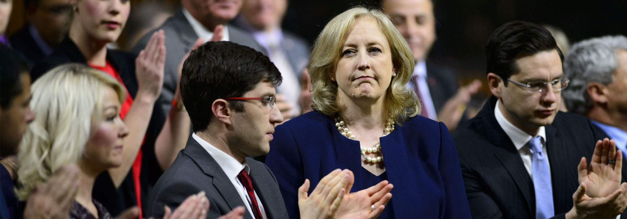 Photo: In January 2019, then-Conservative MP Lisa Raitt stands to ask a question during Question Period in the House of Commons in the West Block of Parliament Hill in Ottawa. THE CANADIAN PRESS/Sean Kilpatrick