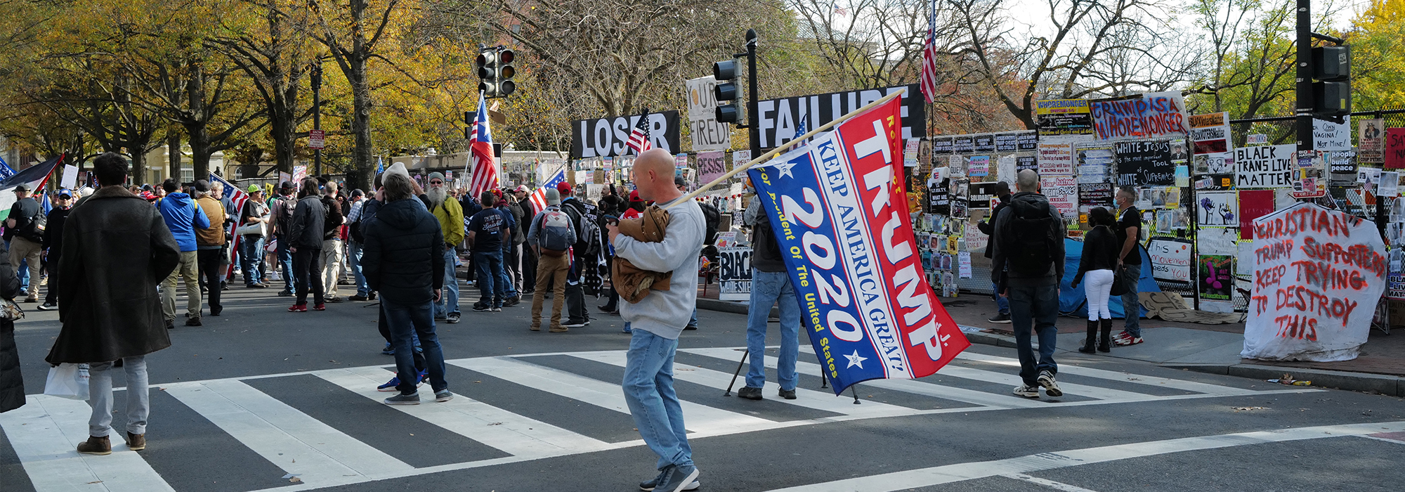 Des partisans de Donald Trump contestent les résultats de l’élection présidentielle du 2 novembre 2020 sur la place Black Lives Matter à Washington, le 13 novembre 2020. Shutterstock / Phil Pasquini.