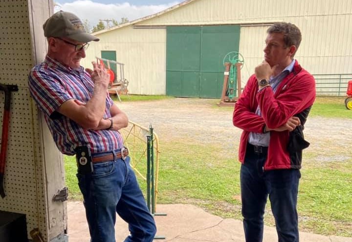 At the Hants County Exhibition in Windsor, N.S., this summer, Blois speaks with a voter. Source: Kody Blois’s campaign team.