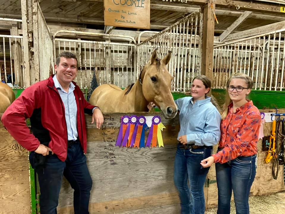 Kody Blois at the Hants County Exhibition in Windsor, N.S., this summer with participants in the youth pole and barrel rodeo races. Source: Kody Blois’s campaign team.