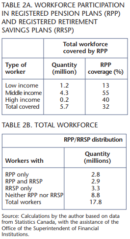 Where are the supplemental pension payments for our target group of 7.8 million middle-income workers to come from? The prevailing public policy answer has been that they would come through voluntary arrangements where income taxes on retirement savings can be deferred until they become pension income in the hands of individuals. These arrangements take one of two primary forms: employment-based RPPs, or personal pension accounts, mainly in the form of individual or group RRSPs and registered retirement income funds (RRIFs).