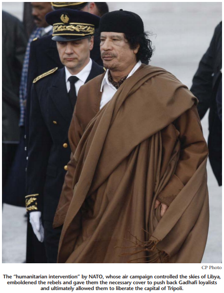 Lloyd Axworthy, the Canadian most identified with the new doctrine of humanitarian intervention by the international community, wrote in the Globe and Mail that the Libyan experience has bolstered “the emerging norm of how international justice trumps sovereignty.”