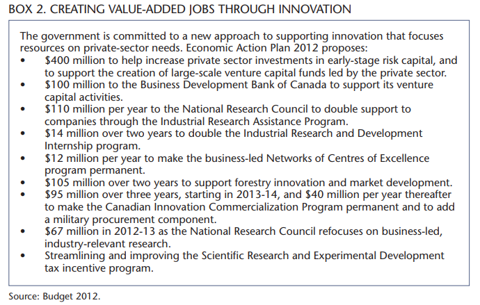 So what was new in the federal budget? What has really changed? What are some underlying messages that we should take from Budget 2012 about future directions for Canadian innovation? How much is left to accomplish?