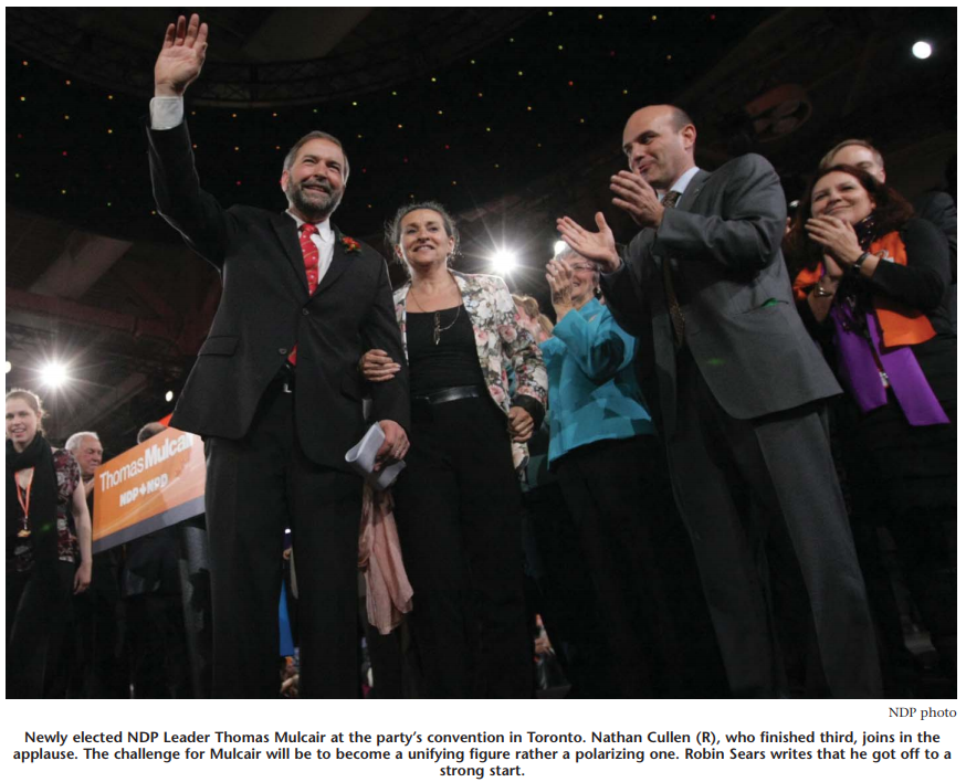 The next few weeks will reveal whether Mulcair’s new mantle of power has elevated his approach to politics, whether his appointment of former opponent Libby Davies as his deputy was a cynical public gesture or a genuine expression of the importance of healing. So far, the jury in the other leadership camps — all of whom studiously refused until the convention’s final vote to endorse Mulcair —remains out.