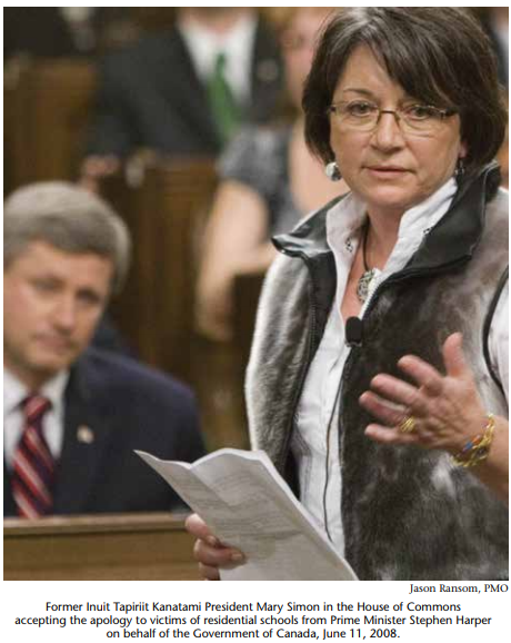 Former Inuit Tapiriit Kanatami President Mary Simon in the House of Commons accepting the apology to victims of residential schools from Prime Minister Stephen Harper on behalf of the Government of Canada, June 11, 2008.