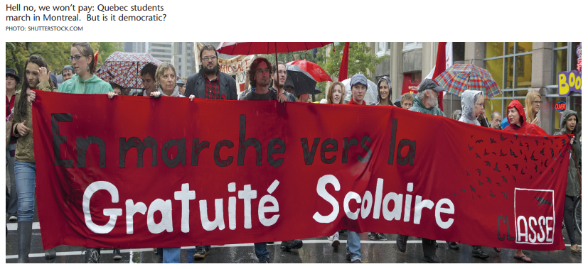 But social media’s potential to organize and inspire has worrisome implications, as well. The consequences of such mobilization can be destructive rather than constructive. The lesson from the recent events in Quebec, which mobilized many thousands of young people against a university tuition hike, suggested an incompatibility between social media politics and representative democracy as we have known it. This is an important challenge to those who argue that online activism is replacing traditional politics.