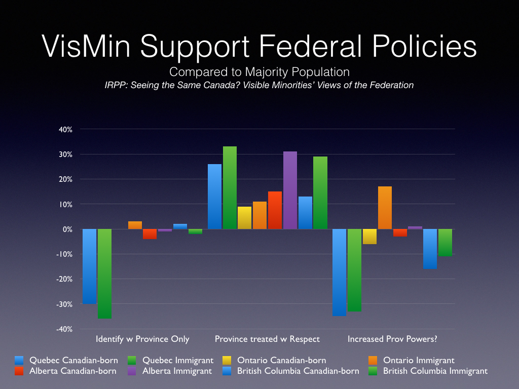 A useful report by IRPP researchers Antoine Bilodeau, Luc Turgeon, Stephen E. White and Ailsa Henderson on the views regarding the federation of visible minorities, divided into both immigrants and second or more generations.