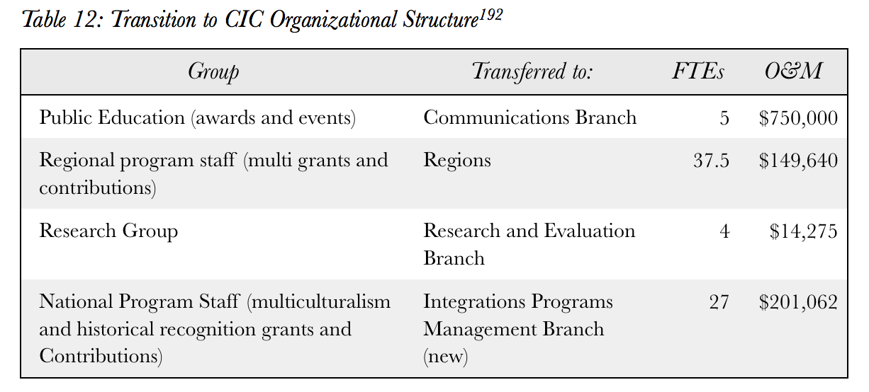 This is personally and professionally interesting, given that I managed the transfer to CIC in 2008, and have consistently written that multiculturalism was atrophying at CIC given its more operational focus on citizenship and immigration.