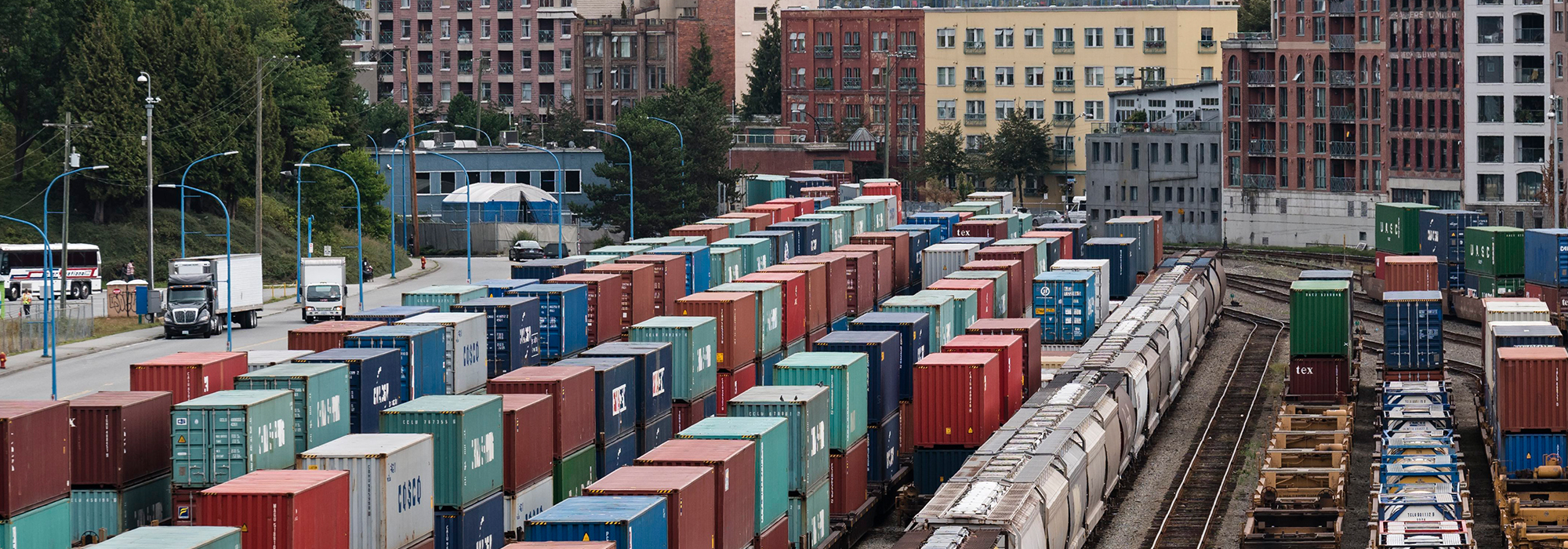 Photo: Wagons, trémies et conteneurs intermodals sur les rails du Canadien Pacifique, au bord de mer, centre-ville de Vancouver, C.B., 9 septembre 2016. THE CANADIAN PRESS IMAGE/Bayne Stanley.