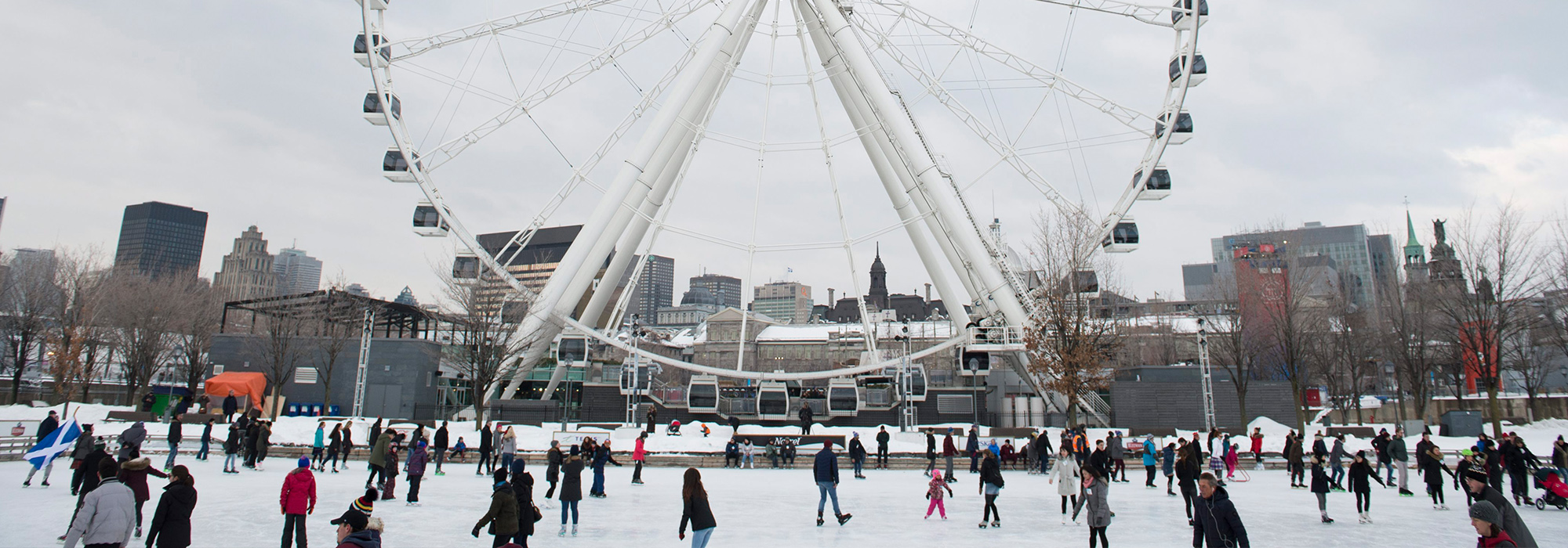 Photo: People skate next to the ferris wheel in Montreal’s Old Port, Saturday, January 20, 2018. THE CANADIAN PRESS IMAGES/Graham Hughes