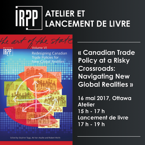 Cet événement de l’Institut de recherche en politiques publiques (IRPP) a donné lieu au lancement d’un important ouvrage collectif sur notre politique commerciale. Intitulé Redesigning Canadian Trade Policies for New Global Realities, l’ouvrage est le fruit d’un projet de recherche interdisciplinaire auquel ont collaboré plus de trente experts de huit pays. Les auteurs explorent l’incidence des changements structurels et des tendances émergentes du commerce mondial, des technologies et du pouvoir économique sur le Canada et ses politiques publiques.